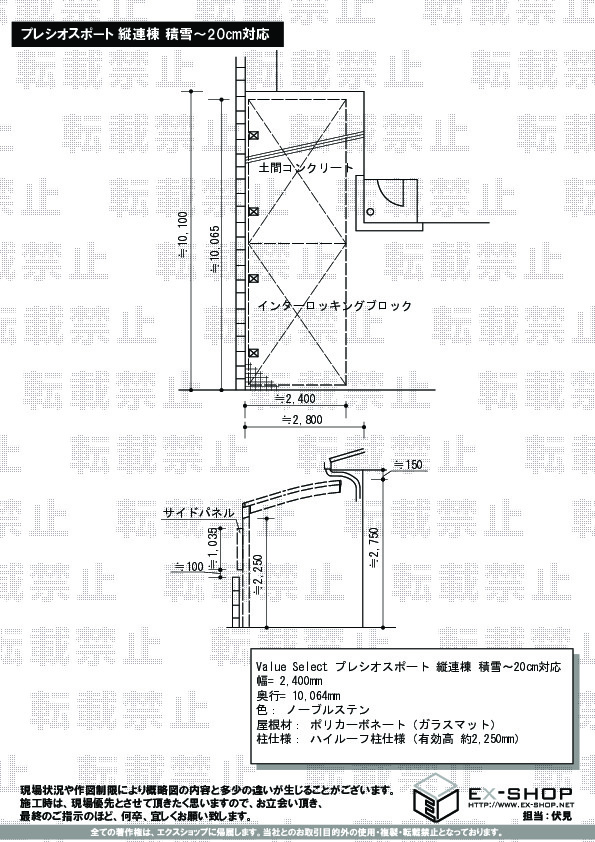 サイズ | 幅 2,400mm 奥行 10,064mm |