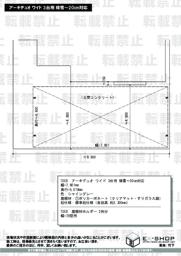 施工担当者ならびに弊社スタッフに、お褒めのお言葉をお寄せ頂き、誠に有り難うございます。スマートなフォルムのアーキデュオ ワイド 3台用が綺麗に納まり、明るく、開放感のあるお仕上がりでございますね。余裕を持って3台のお車を駐車して頂け、カーポート以外にも様々な用途にご活用頂けるものと存じます。今後も丁寧で迅速な対応を心掛け、更にお客様に満足して頂けるエクスショップを目指して参ります。また機会がございましたら、是非弊社にご用命くださいますよう、宜しくお願い致します。