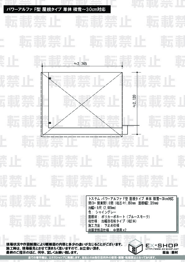 | 柱仕様 | 出幅自在桁タイプ(柱2本) |