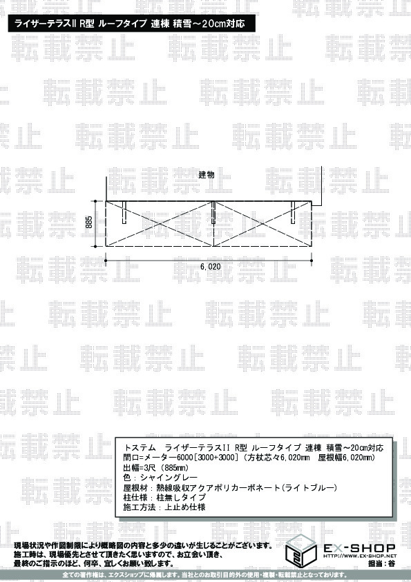 サイズ | 屋根幅 6,020mm 出幅 885mm |