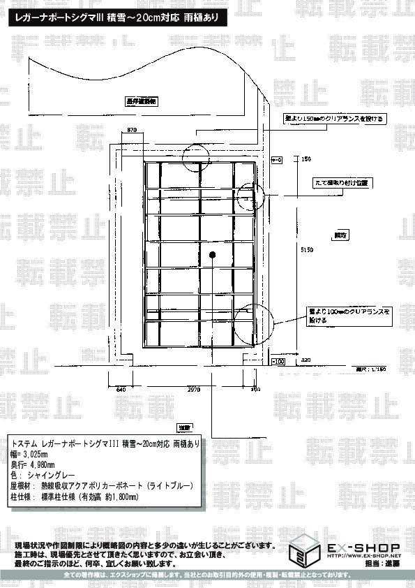 | 屋根高等 | 標準柱仕様(有効高 約1,800mm) |