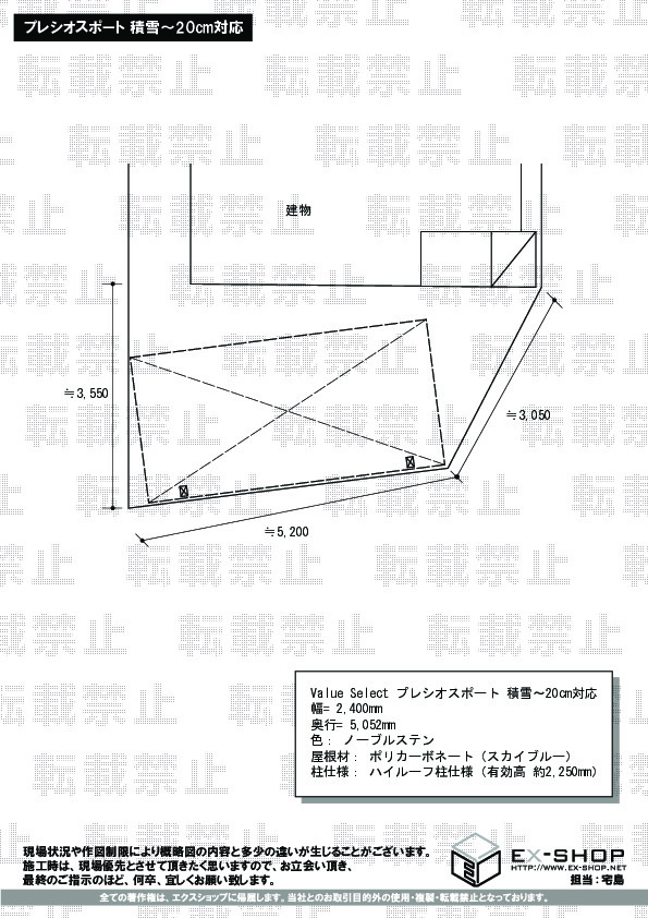 | 屋根材等 | ポリカーボネート(スカイブルー) |