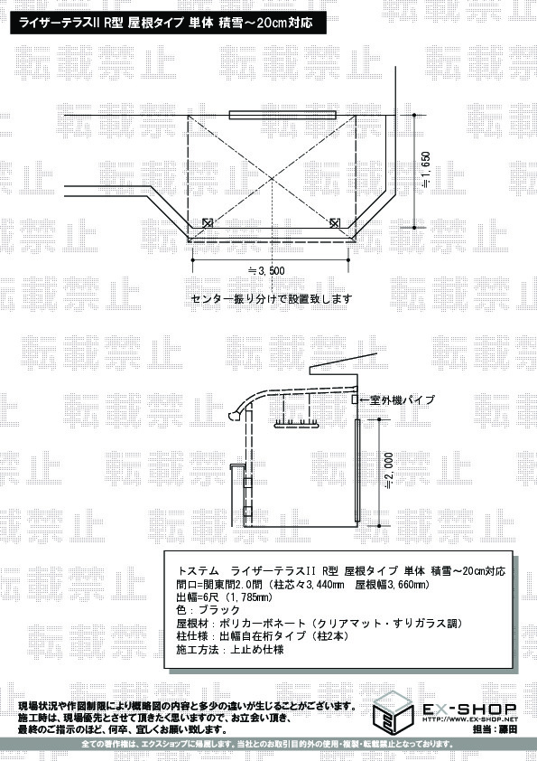 | サイズ | 屋根幅 3,660mm 出幅 1,785mm |
