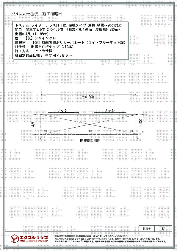 | サイズ | 屋根幅 6,390mm 出幅 1,185mm |