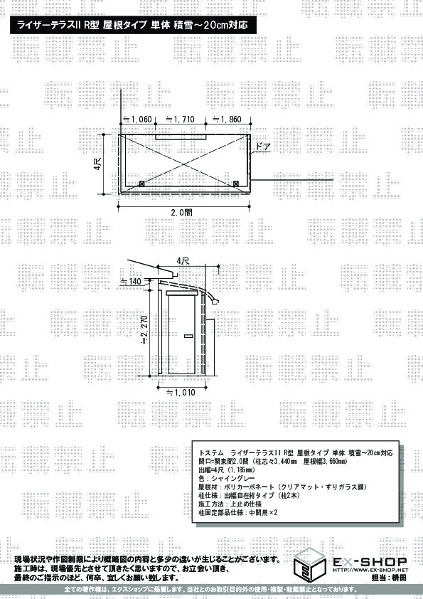 サイズ | 屋根幅 3,660mm 出幅 1,185mm |