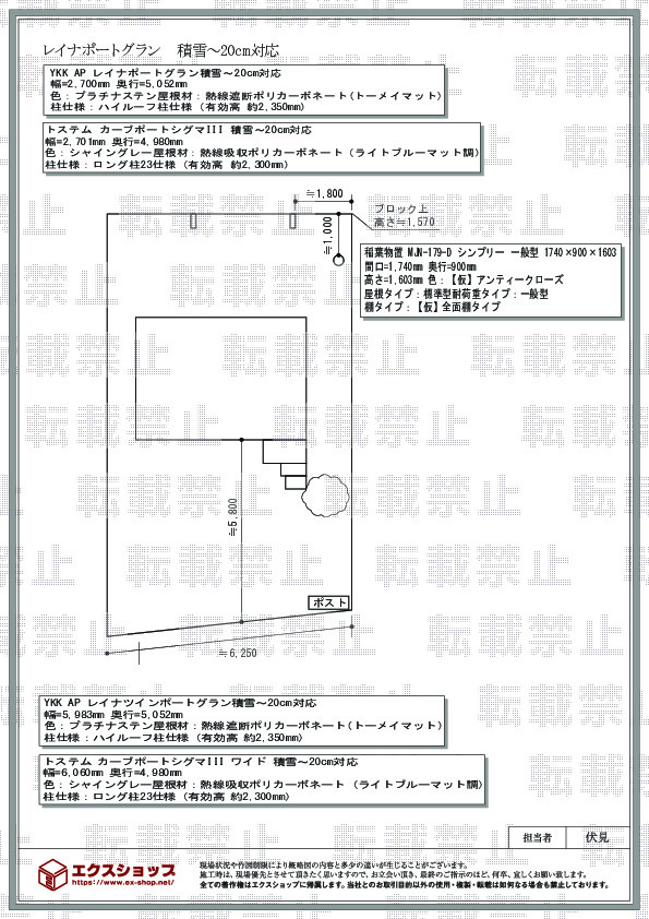 外構を調べていてYouTubeを良く見ていましたがお勧めがエクスショップだったので3台用で見積りを取ってみて希望に近かったので決めましたが、実際に決定した見積りは設置業者さんお勧めの組合せが良かったので変更して決定しました。設置してから霜が降りる寒い日や雨の日の乗り降りが大変楽になり設置して良かったです。