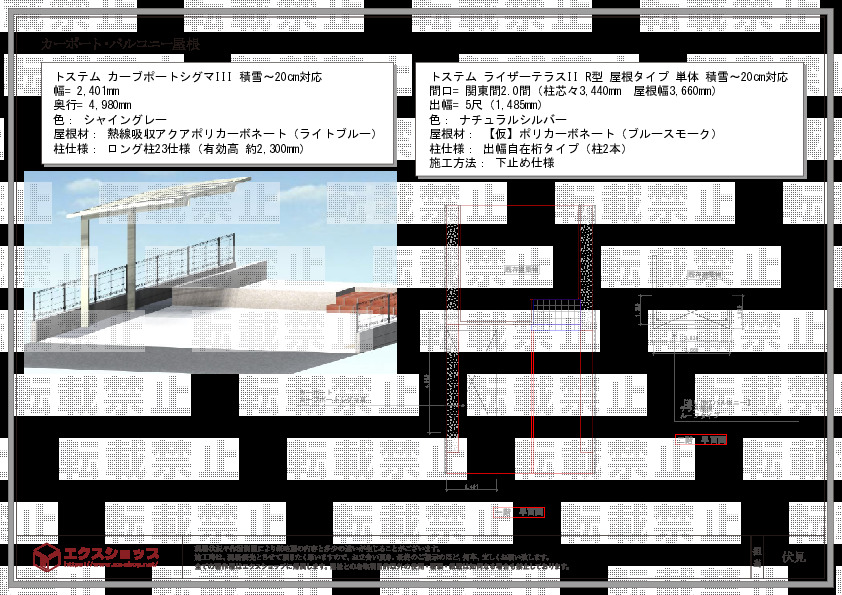 | 屋根高等 | ロング柱23仕様(有効高 約2,300mm) |