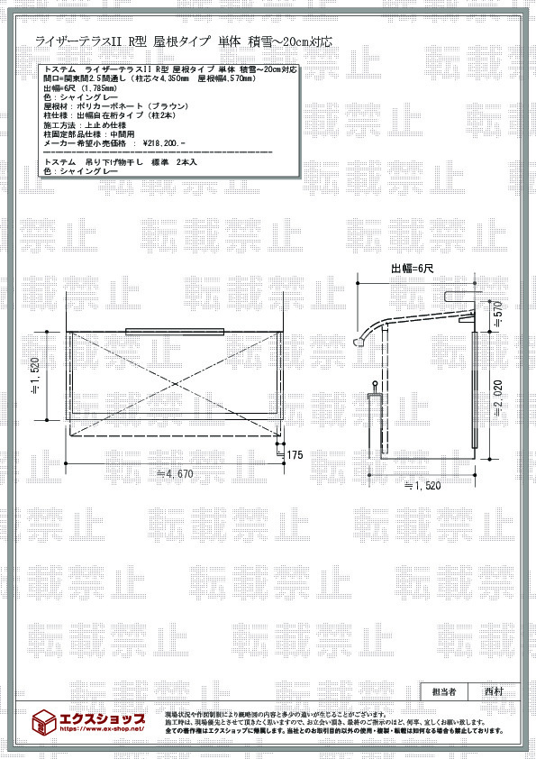 | サイズ | 屋根幅 4,570mm 出幅 1,785mm |