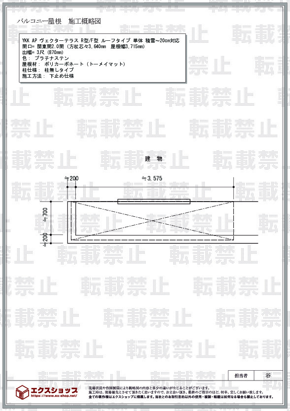 | サイズ | 屋根幅 3,715mm 出幅 870mm |