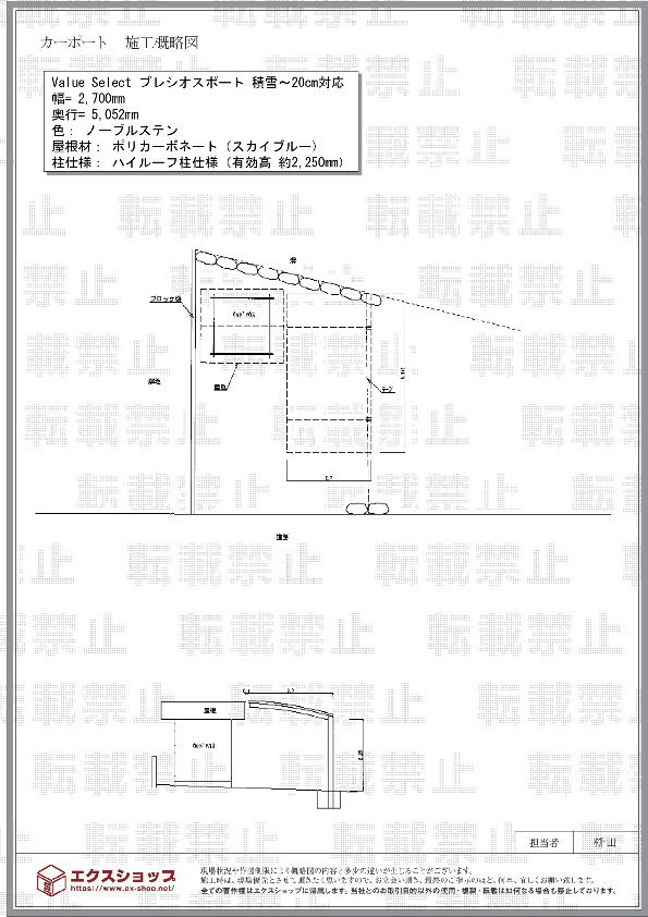 昨年購入した車両は高さが2,250mmあり構造的にルーフには乗れず、洗車がとても大変で苦労していました。現在3連のカーポートはありますが高さが2,400mmの所があり納まりません。高さがクリアーできるカーポートを探した所エクスショップに辿り着きました。価格、保証等説明を聞き、クチコミにも後押しされ決めさせて頂きました。現地調査も準則にして頂き設置も近くの業者様により、2日で完了しました。設置後雨が降りましたが、車両が濡れないため雨垂れ等無くとても満足しております。また機会がありましたらその際は是非お願いしたいと思います。大変有り難う御座いました。