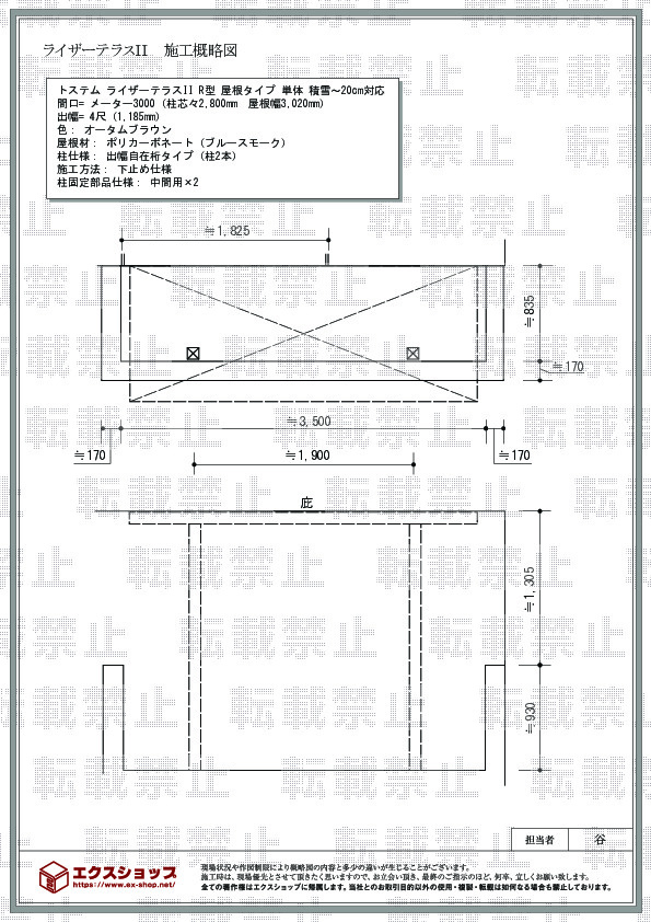 | 柱仕様 | 出幅自在桁タイプ(柱2本) |