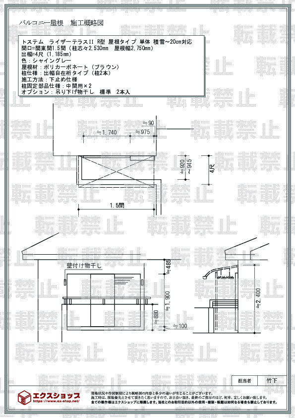 | サイズ | 屋根幅 2,750mm 出幅 1,185mm |