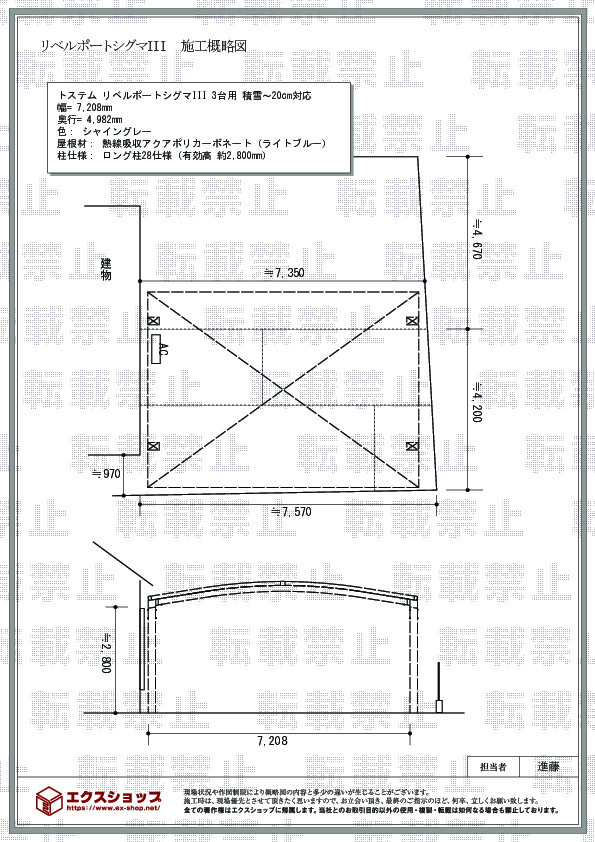 | 屋根高等 | ロング柱28仕様(有効高 約2,800mm) |