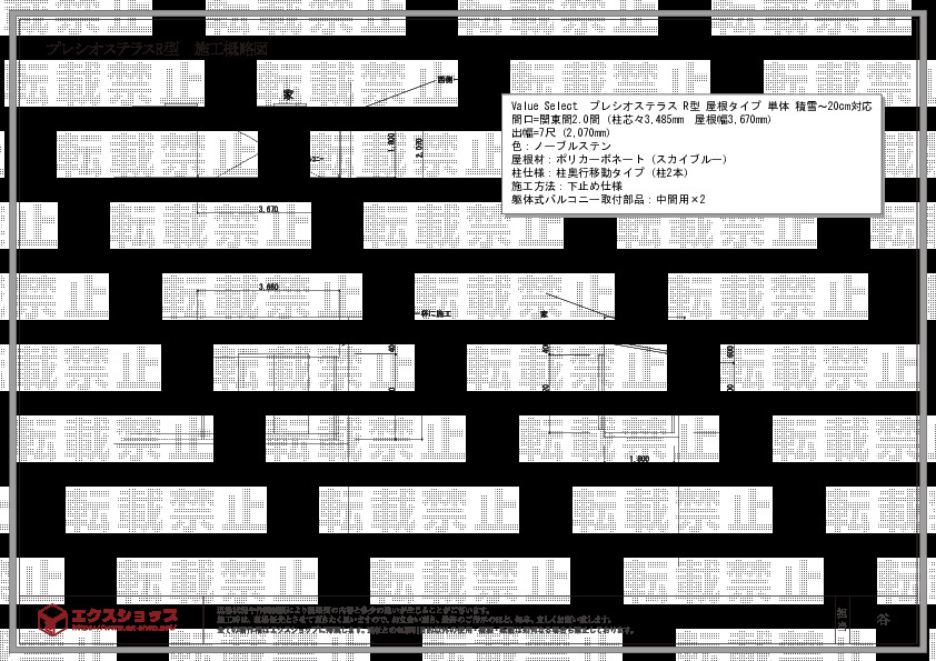 | サイズ | 屋根幅 3,670mm 出幅 2,070mm |