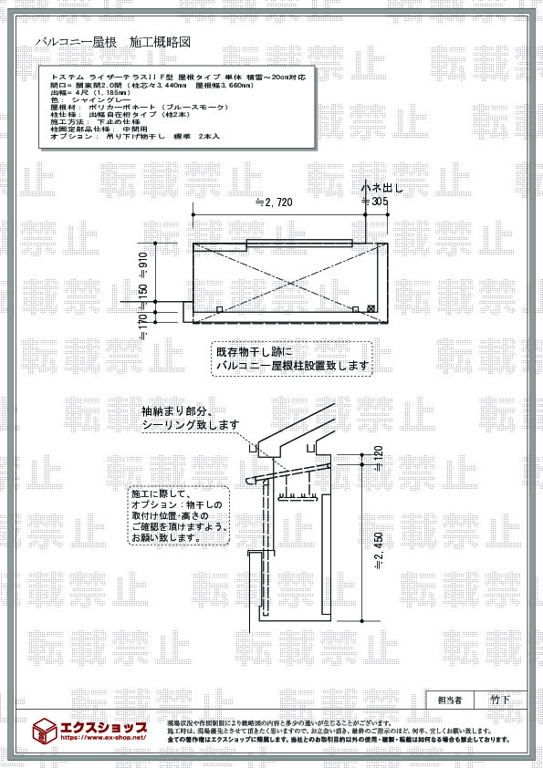 | 柱仕様 | 出幅自在桁タイプ(柱2本) |