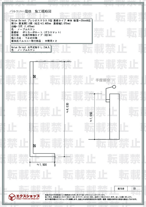| サイズ | 屋根幅 3,670mm 出幅 1,470mm |