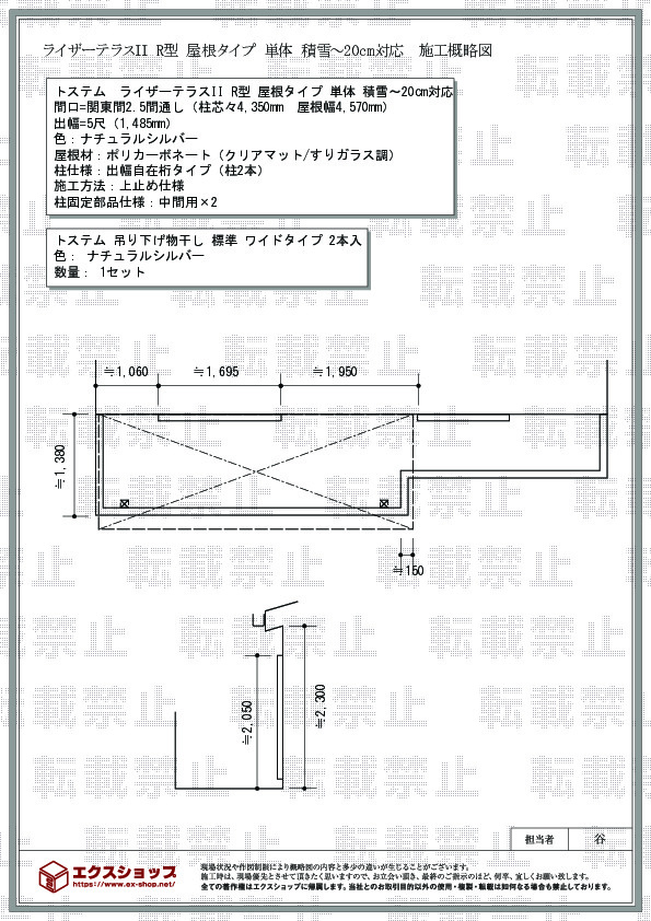 サイズ | 屋根幅 4,570mm 出幅 1,485mm |