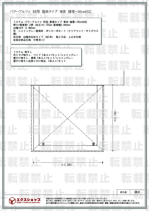 | 柱仕様 | 出幅自在桁タイプ(柱2本) |