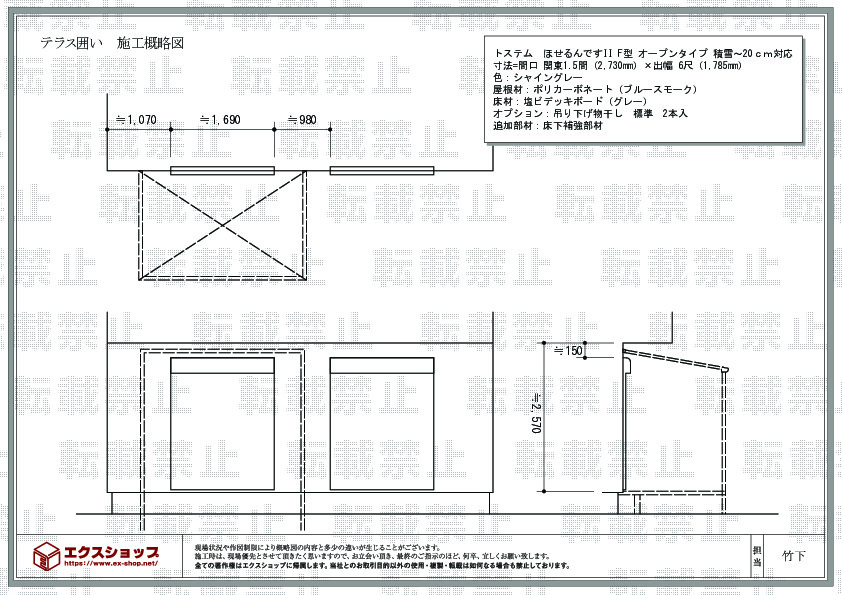 サイズ | 間口 2,730mm 出幅 1,785mm |