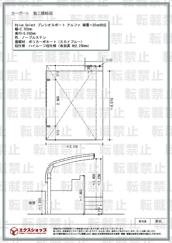この度は、プレシオスポート アルファの施工ご依頼を頂き誠に有り難うございます。施工士も担当スタッフもお客様にご満足頂く事を第一に考えておりますので、この様なお言葉を頂戴でき大変嬉しく存じます。ノーブルステンとポリカーボネート(スカイブルー)の組合せは、お車にふさわしい爽やかなお仕上がりでございますね。今後も、日々精進して参りますので、また機会がございましたら是非エクスショップをご利用下さいますよう、宜しくお願い致します。