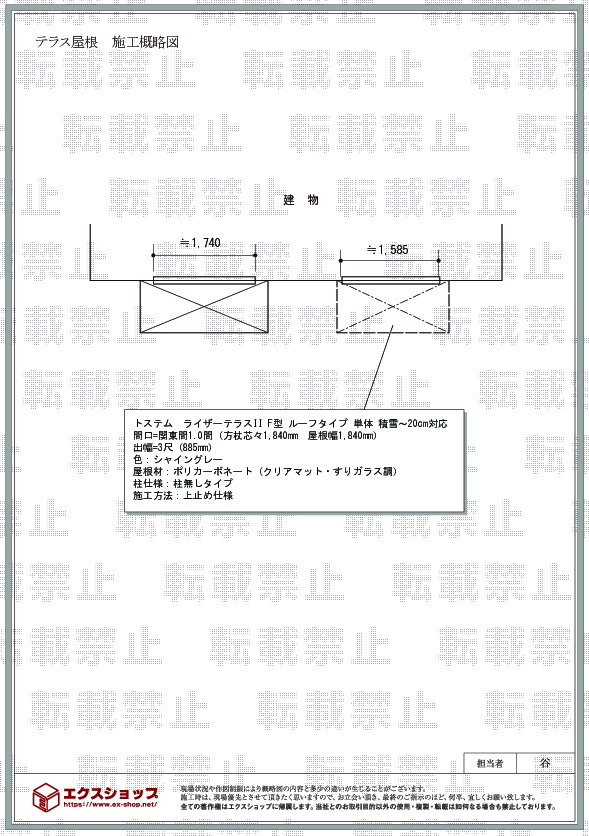 この度はライザーテラスII F型の施工をご依頼頂きまして、誠に有り難うございます。ネット販売という顔の見えないお取引にご不安もおありであったかと存じますが、弊社を信頼して頂き、施工までお任せ頂きまして、大変光栄でございます。シャイングレーのテラス屋根がサイズピッタリに納まっており、後付けとは思えないとても美しいお仕上がりでございますね。ポリカーボネートの屋根材は雨埃だけでなく、有害な紫外線も遮断致しますので、大変機能的にご利用頂けることと存じます。今後はスピード面でもお客様にご満足頂けますよう、迅速丁寧な対応を心掛けて参りますので、また機会がございましたらえクスショップをご用命くださいますよう、宜しくお願い致します。