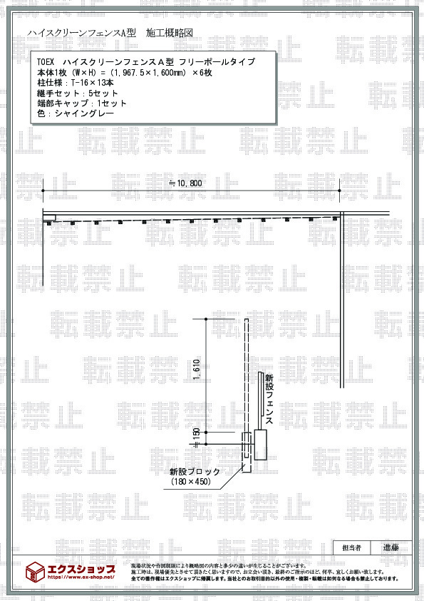 ○エクスシュップ様から、発注から完了までの流れを丁寧に教えていただきましたので、安心してお任せできました。またその都度、連絡も迅速にいただきました。○施工前現地打ち合わせでは、フェンスの色について、建物や周辺環境にあわせた色合いをアドバイスいただき、シャイングレーに変更しました。とても明るい印象で、また、フェンス本体も頑丈で大変満足です。○工事途中で一部変更が生じたのですが、増額どころか逆にお安くしていただきました。○エクスシュップ様並びに地元業者様の対応が大変親切丁寧で、とても気持ちよく買い物ができました。ありがとうございました。