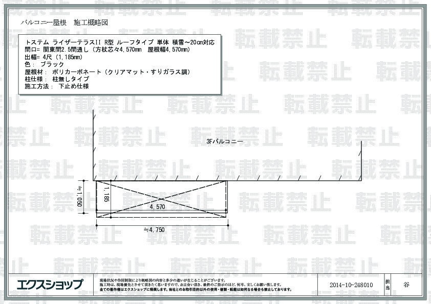 | サイズ | 屋根幅 4,570mm 出幅 1,185mm |