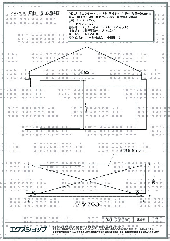 サイズ | 屋根幅 4,580mm 出幅 1,470mm |