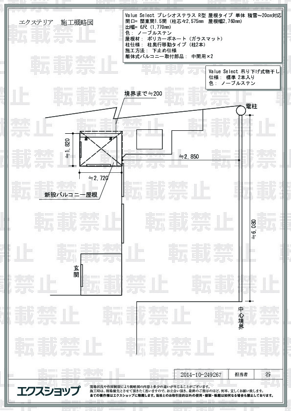 | サイズ | 屋根幅 2,760mm 出幅 1,770mm |