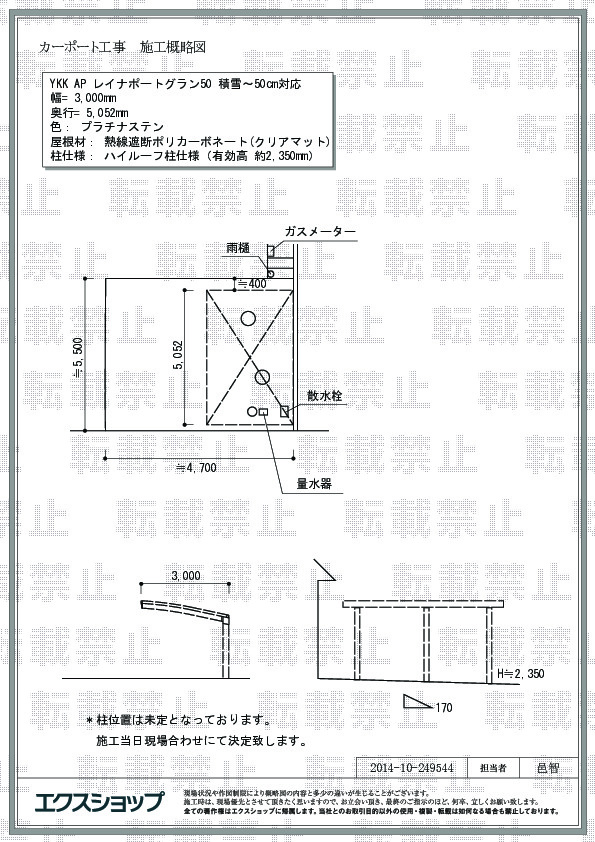レイナポートグラン50の施工をご依頼頂きまして、誠に有り難うございます。お客様のお住まいのお近くより施工担当者がお伺いし、それぞれの地域に最適な商品をお勧めすることが出来ますのは、「地域密着あんしん施工」ならではと存じます。お客様に安心してご使用頂け、何よりの喜びでございます。今後また機会がございましたら、是非エクスショップにご用命ください。またのご利用を、心よりお待ち致しております。