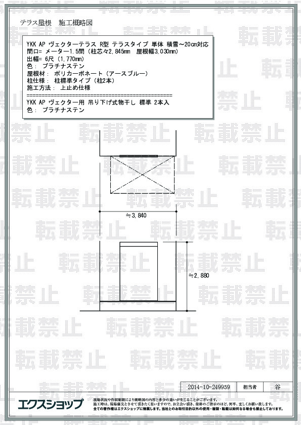 | サイズ | 屋根幅 3,030mm 出幅 1,770mm |