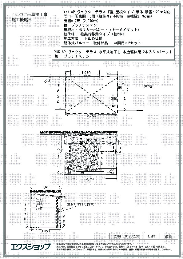 | サイズ | 屋根幅 2,760mm 出幅 2,070mm |
