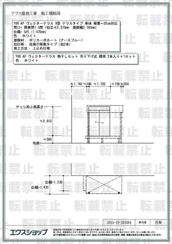 サイズ | 屋根幅 2,760mm 出幅 1,470mm |
