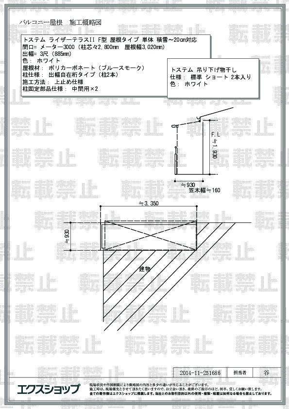 | サイズ | 屋根幅 3,020mm 出幅 885mm |