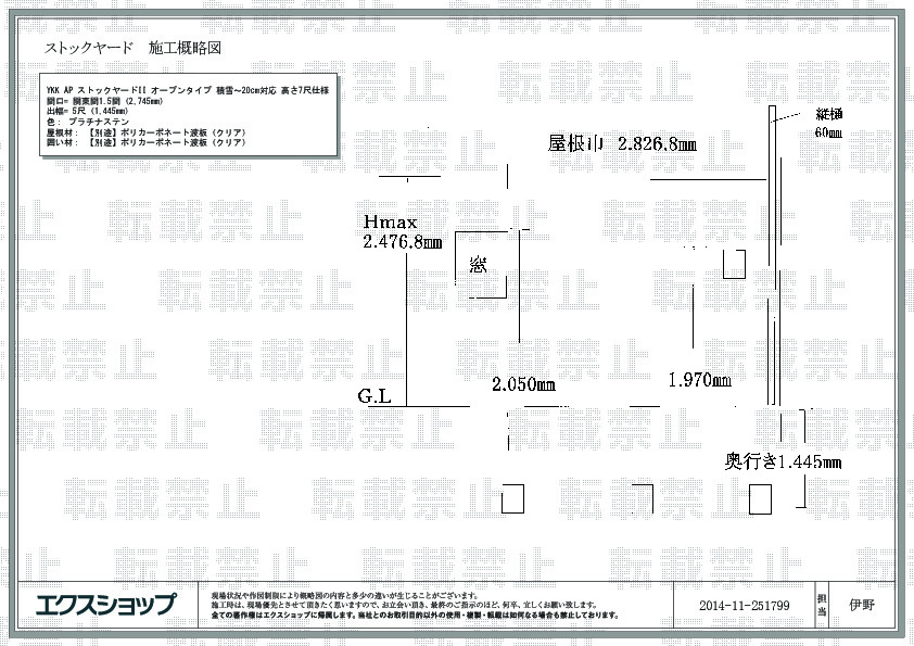 | サイズ | 間口 2,745mm 出幅 1,145mm |
