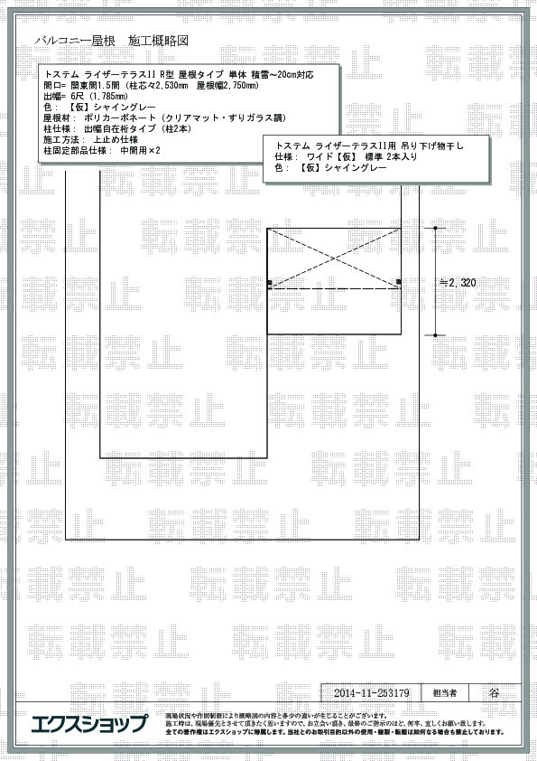 | サイズ | 屋根幅 2,750mm 出幅 1,785mm |