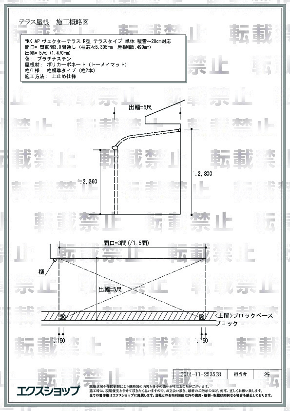 サイズ | 屋根幅 5,490mm 出幅 1,470mm |