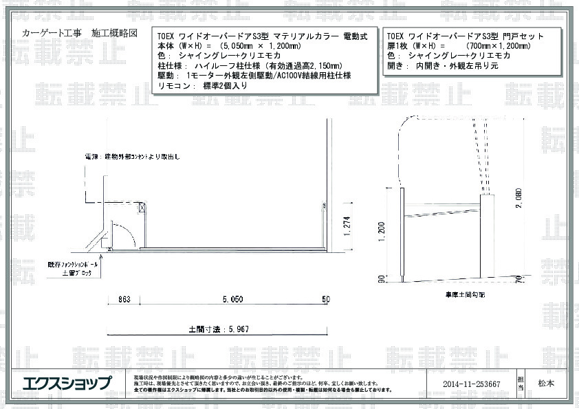 TOEX ワイドオーバードアR1型 ハイルーフ電動タイプ 5400x1000