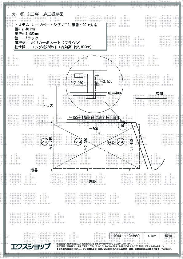 正式お見積りと一緒に提出させて頂いております「工事概略図面」もご覧頂けます。