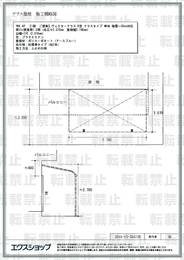 サイズ | 屋根幅 2,760mm 出幅 2,070mm |