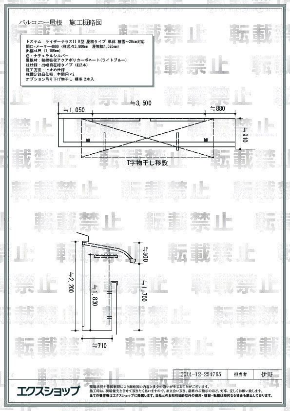 この度はライザーテラスII R型 屋根タイプの施工をご依頼頂き、誠に有り難うございました。バルコニー屋根の施工により、お客様の毎日の暮らしをより快適にするお手伝いが出来ましたのなら、光栄でございます。熱線吸収アクアポリカーボネート(ライトブルー)の屋根材が、雨風だけではなく、太陽光の紫外線や熱を遮りますので、一年を通して快適にご使用頂けるものと存じます。これからもお客様の笑顔の為に、エクスショップは日々精進して参ります。また機会がございましたら、是非弊社にご用命くださいますよう、宜しくお願い申し上げます。