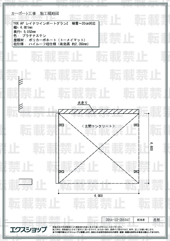 レイナツインポートグランの施工をご依頼頂きまして、誠に有り難うございます。顔のみえないネット販売で高額の商品をご購入頂く際に、不安に思われるのもごもっともでございます。にもかかわらず、弊社を信頼して、施工までお任せ頂き、誠に光栄でございます。ポリカーボネート(トーメイマット)の屋根が光を受けて、スタイリッシュなお仕上がりでございますね。これからは、カーポートが雨や強い日差しをしっかりと遮ってくれますので、お車や自転車を止めていても安心でございますね。今後また機会がございましたら、是非エクスショップにご用命ください。またのご利用を、心よりお待ち致しております。