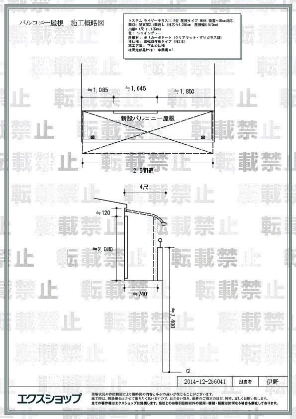 | サイズ | 屋根幅 4,570mm 出幅 1,185mm |