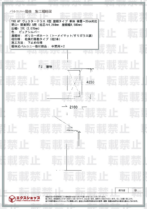 | サイズ | 屋根幅 4,580mm 出幅 2,070mm |