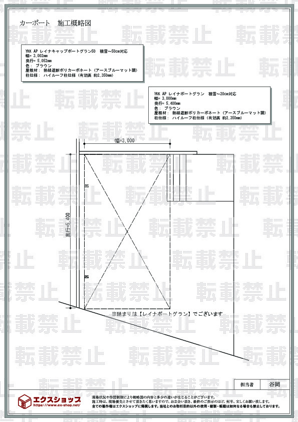 顔のみえないネット販売にはご不安がおありだったかと存じますが、弊社を信頼して施工までお任せ頂き、誠に有り難うございます。レイナキャップポートグラン50がご自宅のカースペースに綺麗に納まりましたこと、大変嬉しく存じます。今後も丁寧で迅速な対応を心掛け、更にお客様に満足して頂けるエクスショップを目指して参ります。機会がございましたら、是非、弊社にご用命くださいますよう、宜しくお願い致します。またのご利用を、心よりお待ち申し上げております。