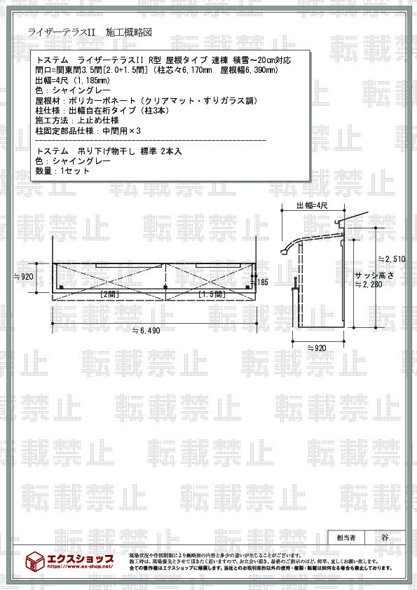 | サイズ | 屋根幅 6,390mm 出幅 1,185mm |