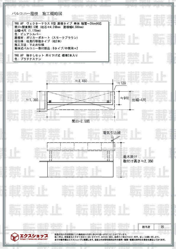 | サイズ | 屋根幅 4,580mm 出幅 1,170mm |