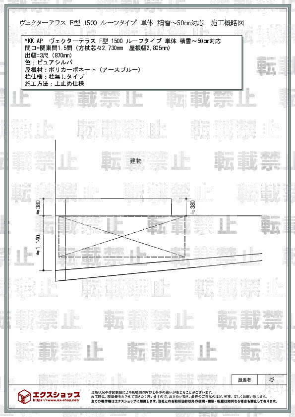 サイズ | 屋根幅 2,805mm 出幅 870mm |
