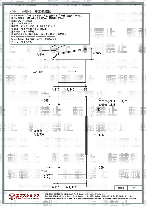 サイズ | 屋根幅 3,670mm 出幅 1,470mm |