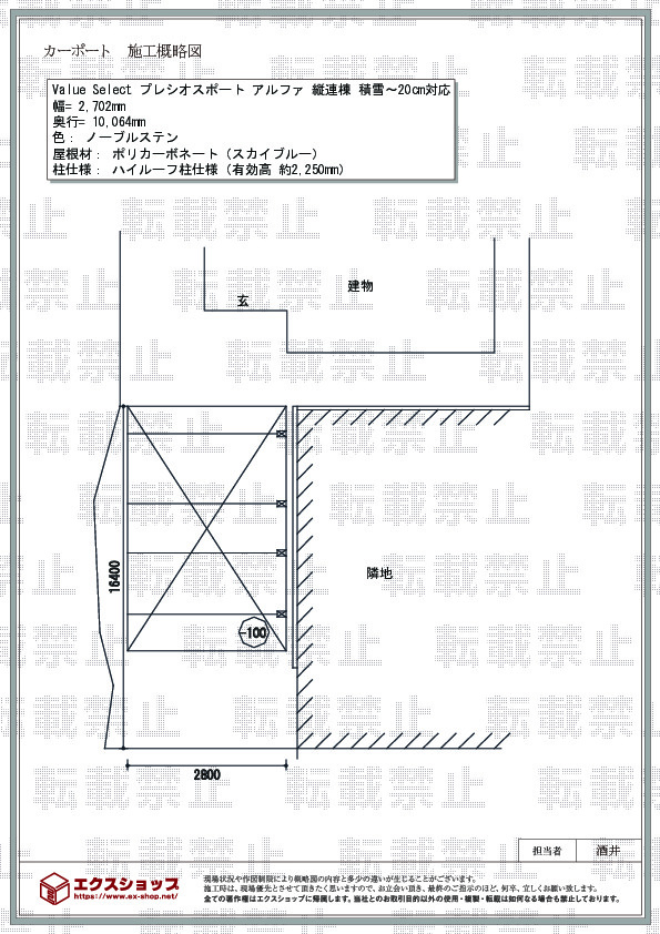 エクスショップのプライベートブランドでございますプレシオスポート アルファ 縦連棟タイプの施工をご依頼頂きまして、誠に有り難うございます。格安のお値段で高品質の商品をお届けしたいと日々精進しておりますので、弊社の対応にお褒めのお言葉をお寄せ頂きましたこと、大変嬉しく存じます。柱側に垂れ下がった屋根が、雨風の吹込みを軽減し、大切なお車にも優しいカーポートでございますね。これからも、快適なお住まいづくりのパートナーとして、エクスショップをご利用して頂きますよう、宜しくお願い致します。